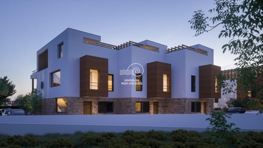 Haus A hat 210 m2 Nettonutzfläche mit Berechnungskoeffizienten, erstreckt sich über drei Etagen und besteht aus: überdachtem Eingang, Flur mit Treppe und Garderobe, Schlafzimmer 1, Waschküche, Bad, Küche und Esszimmer, Wohnzimmer, überdachter Terrasse, im ersten Stock Etage: Flur, Schlafzimmer 2, Loggia, Badezimmer, Schlafzimmer 3 mit eigenem Bad und überdachter Terrasse, im zweiten Stock gibt es eine schöne Dachterrasse