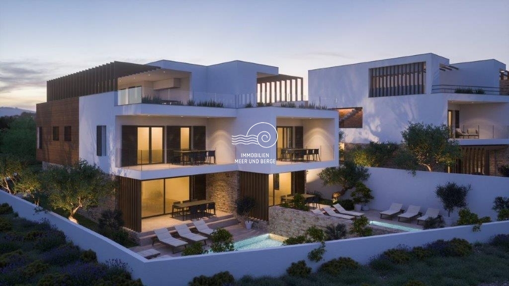 Zusätzlich zu den erwähnten eingebauten hochwertigen Baugeräten und Materialien sind die Einrichtungen auch ausgestattet; Fußbodenheizung in allen Badezimmern, Esszimmer und Wohnzimmer, in allen Räumen werden Klimaanlagen zum Kühlen und Heizen der neuesten Generation installiert, das System wird mit intelligenten Schaltern für Licht und Jalousien mit Zentral- und Fernbedienung ausgestattet, alles elektrisch. System. Die Anlage wird mit einer Videoüberwachung ausgestattet.